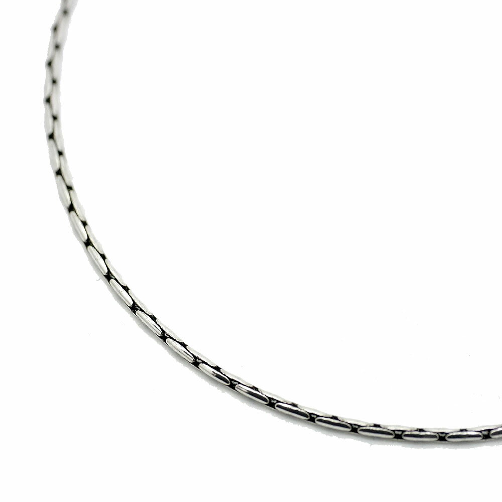 価格: 7,818円 レビュー評価:4.38 レビュー数:8 ※50cm 男性がチェーンを付ける際に標準となる長さです。 女性の場合、トップを長めに着けたい時、重ねづけをする時などにオススメです。 ロープの形状をイメージしてデザインされたシルバーチェーンです。 定番のあずきチェーン等に比べるとハードな印象が強く、カットによるギラっとした輝きが存在感をアップ! 男性の標準になるくらいの太さで、すこし大きめなトップにも対応できるチェーン! ハード系アクセサリーとの相性が抜群で、定番デザインのチェーンでは物足りない!!っという方にもオススメです。 『いぶしチェーン』 シルバー(銀)は硫黄と反応して硫化すると、黒く変色する性質があります。 こちらはシルバー925のチェーンを硫化させることで、従来の銀色とは趣の異なるシックでハードな表情に仕上げた、独特の渋い風合いが魅力のチェーンです。 黒系の石を留めたトップや強くいぶしをかけたトップ等と合わせると、より統一感 (更新日時:2019/03/27 10:46) Supported by 楽天ウェブサービス |